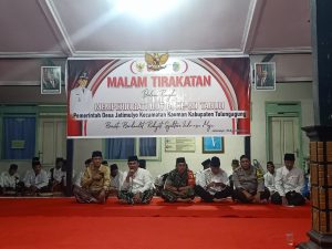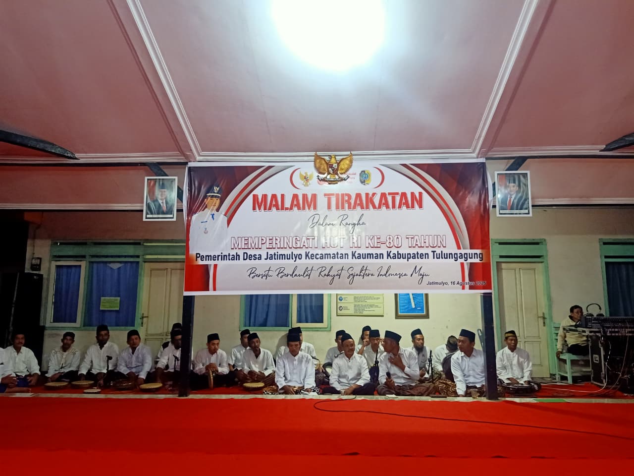 JATIMULYO.DARING.CO.ID – Pemerintah Desa Jatimulyo menggelar malam tirakatan pada Sabtu (16/08) di Balai Desa Jatimulyo. Malam Tirakatan/Tasyakuran menjadi salah satu tradisi unik perayaan HUT RI yang kerap digelar masyarakat Jawa Timur. Malam tirakatan digelar pada 16 Agustus atau malam hari sebelum 17 Agustus. Malam tirakatan 17 Agustus biasanya berisi berbagai kegiatan seperti doa bersama dan makan bersama. Segenap warga Desa Jatimulyo di masing-masing dusun menggelar tirakatan dalam rangka HUT RI KE-80 pada tanggal 16 Agustus 2025 malam.