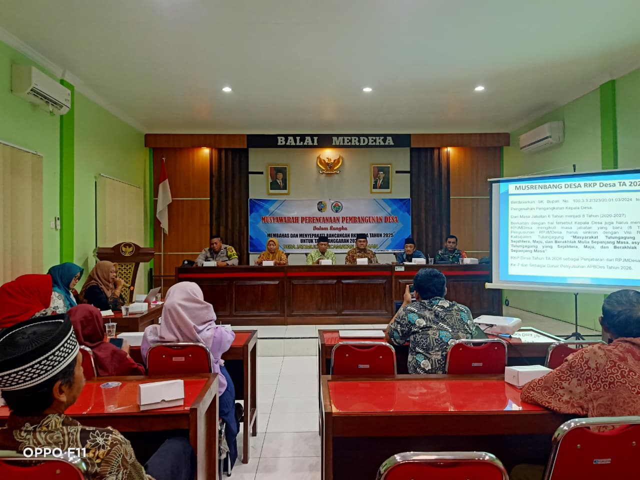 Jatimulyo.daring, 19 September 2025 – PLT Camat Kauman menghadiri (Musrenbang) Desa terkait Perubahan Rencana Pembangunan Jangka Menengah (RPJM) Desa 2020-2025 dan Penyusunan Rencana Kerja Pemerintah (RKP) Desa Tahun 2025 di Desa Jatimulyo. Acara ini berlangsung di Kantor Balai merdeka dan dihadiri oleh perangkat desa, tokoh masyarakat, serta perwakilan warga setempat.