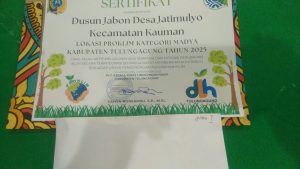 RW 02-RW04 Dusun Jabon Desa Jatimulyo berhasil meraih Juara 1 Lomba ProKlim (Program Kampung Iklim) Tahun 2025 tingkat Kabupaten Tulungagung. Prestasi ini menjadi bukti nyata komitmen masyarakat dalam menerapkan aksi mitigasi dan adaptasi perubahan iklim melalui berbagai kegiatan lingkungan yang berkelanjutan.